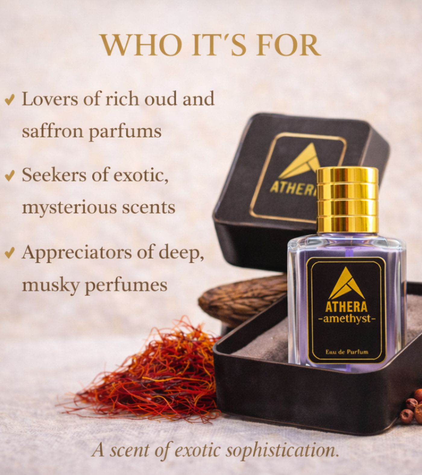 Designed for evenings, winter wear, and special occasions, Athera Amethyst offers strong longevity and a confident scent trail. Its unisex composition makes it equally compelling on both men and women who appreciate oud-based luxury perfumes.