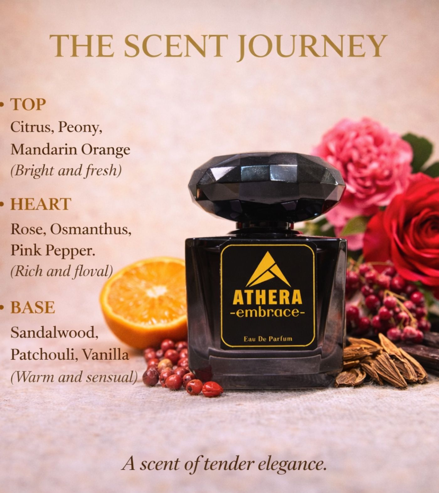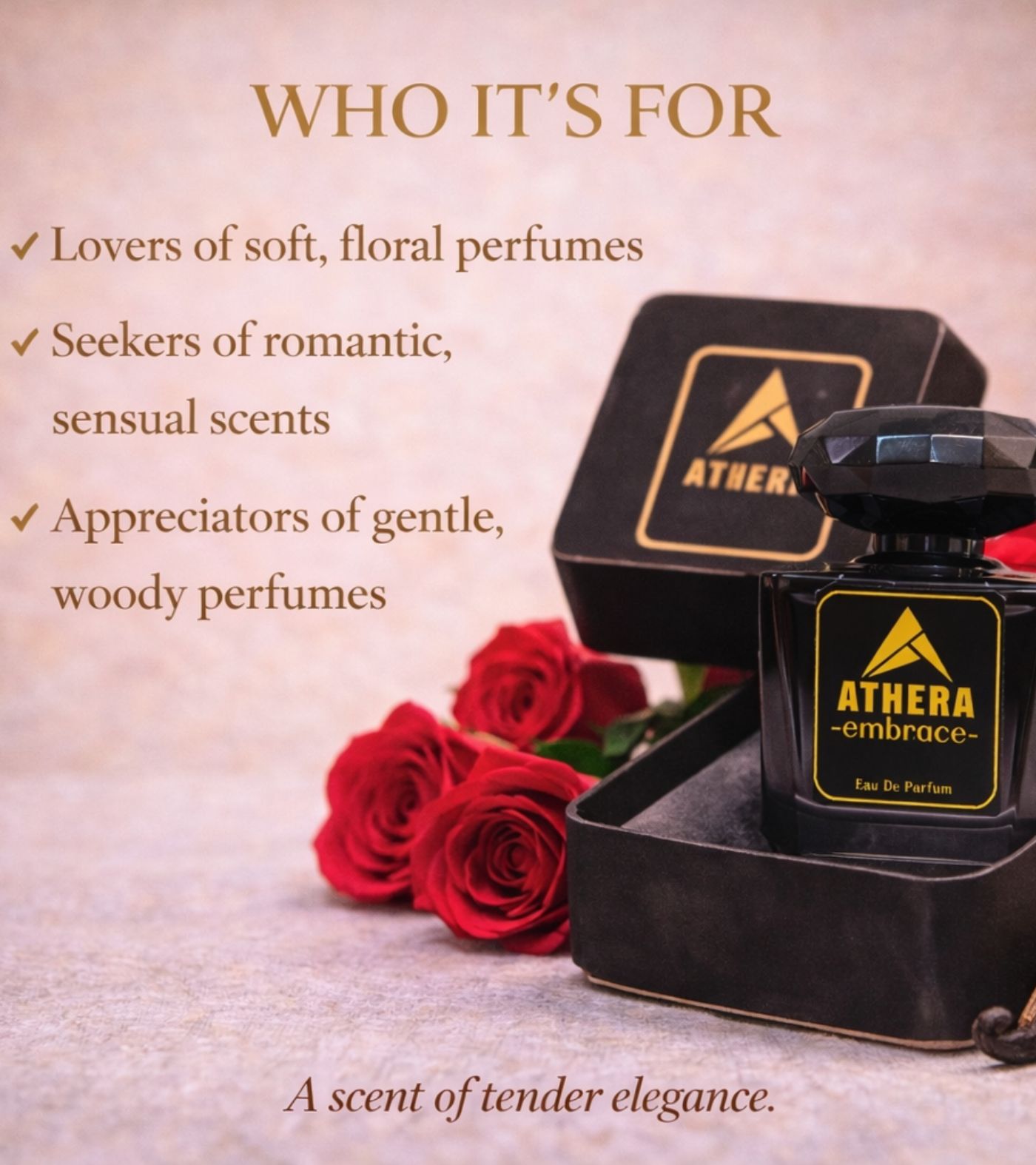 Perfect for day-to-evening wear, romantic occasions, and year-round use, Athera Embrace is ideal for those who prefer fragrances that are elegant rather than overpowering. Its balanced projection and long-lasting nature make it a versatile signature scent for both men and women.
